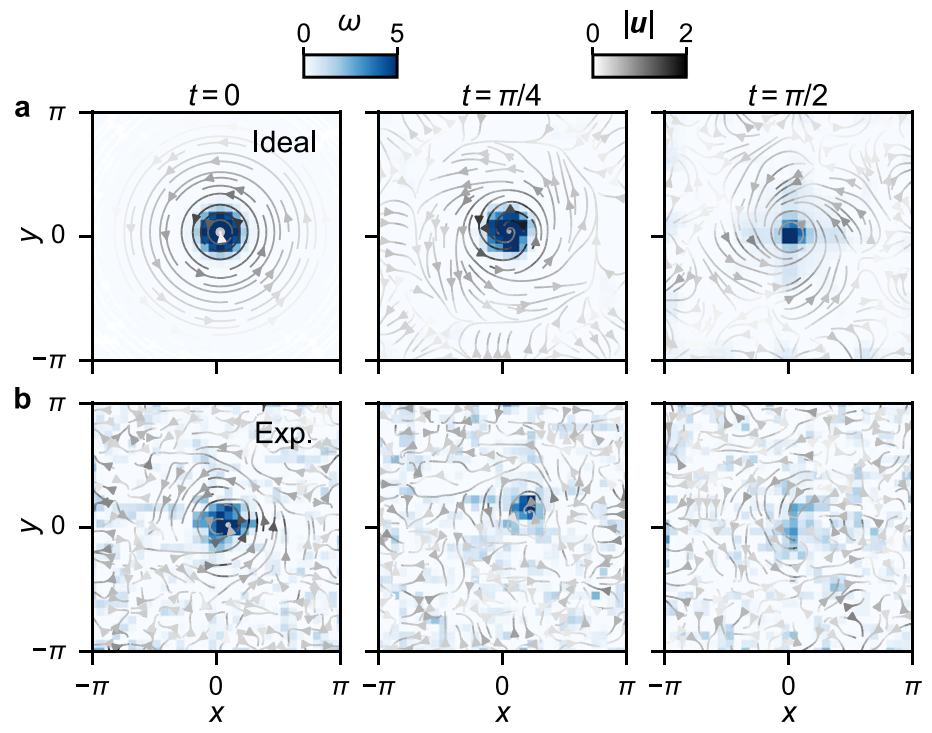 图2:薛定谔涡流量子模拟在超导量子计算机上的实验结果